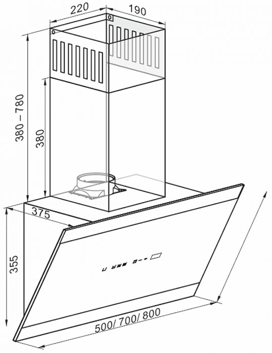 Описаниевытяжка наклонная, 70 см, 1000 м3/ч, черный