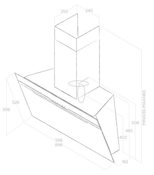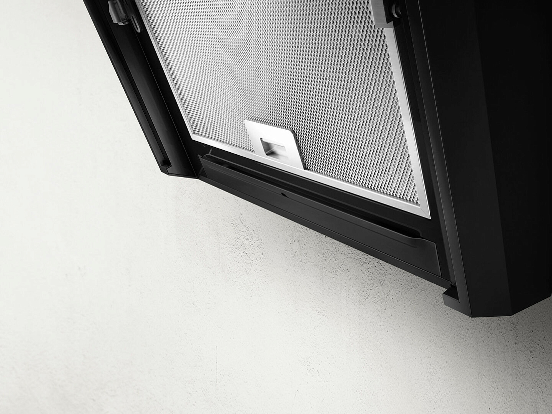 Описаниевытяжка наклонная, 60 см, 1200 м3/ч, черное стекло/нержавеющая сталь