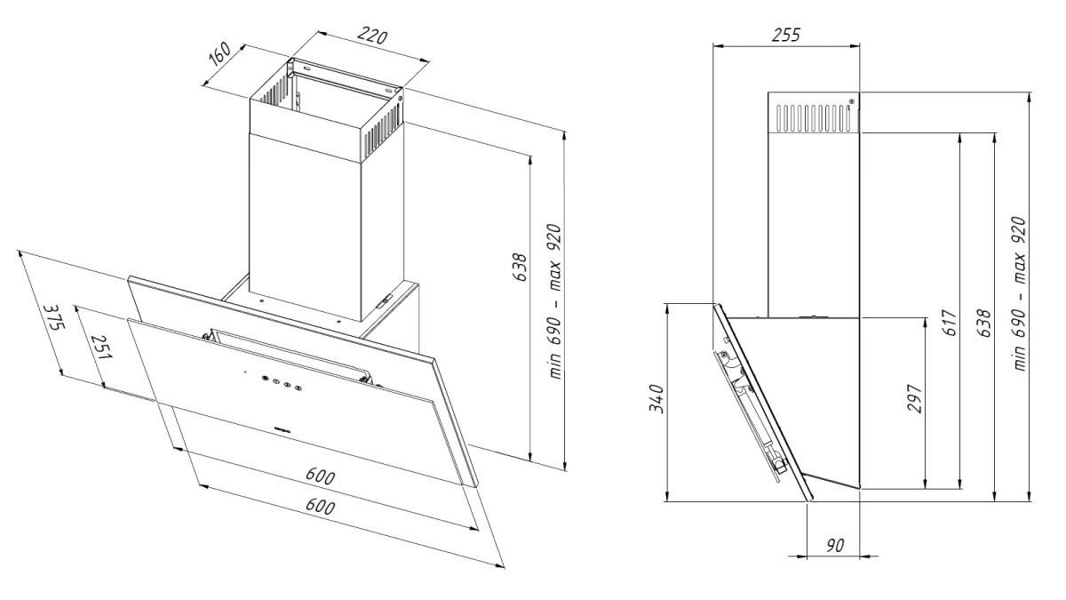 Описаниевытяжка наклонная, 60 см, 1080 м3/ч, черный