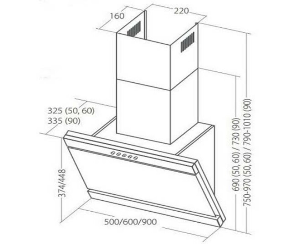 Описаниевытяжка наклонная, 60 см, 850 м3/ч, белый