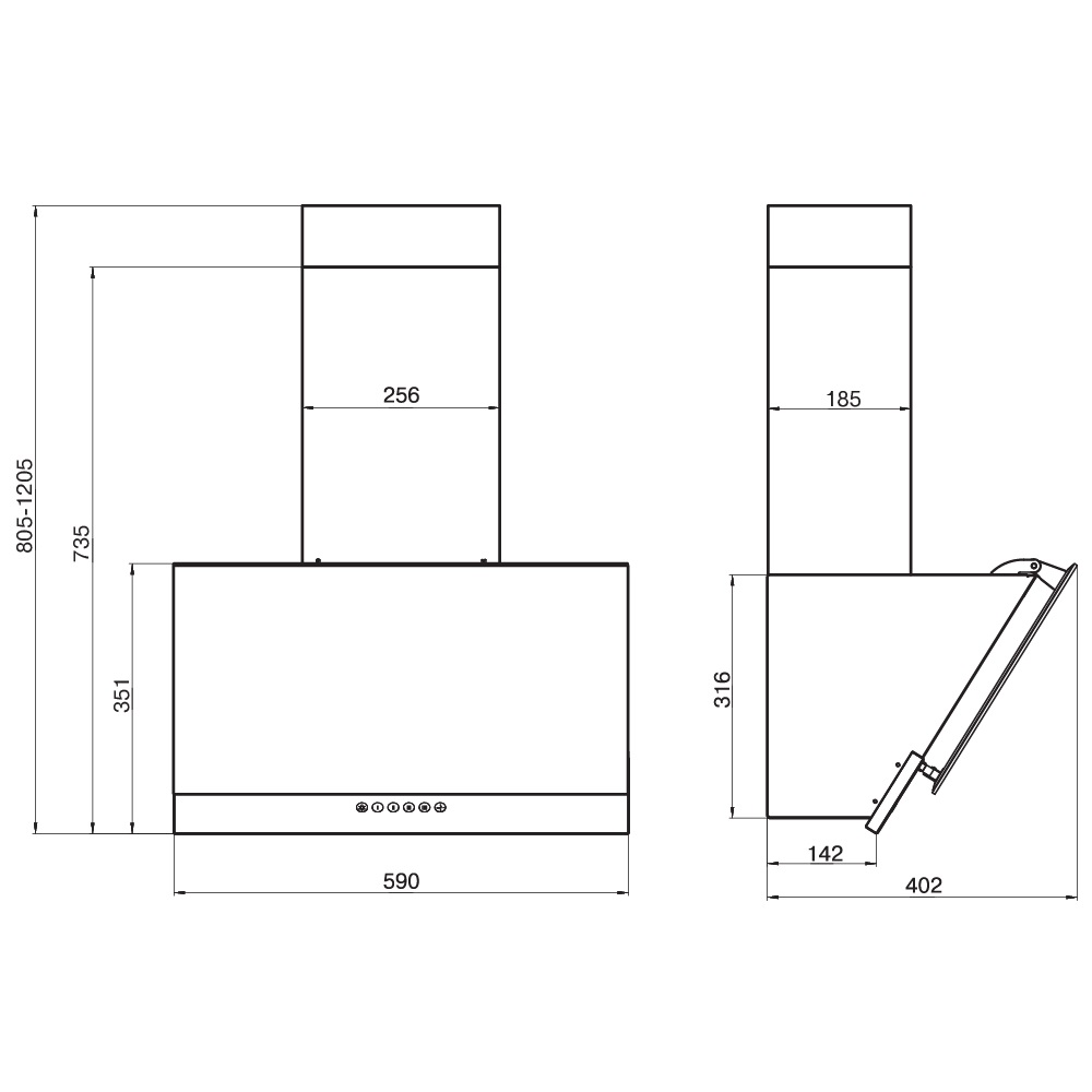 Описаниевытяжка наклонная, 60 см, 700м3/ч, нержавеющая сталь/черное стекло