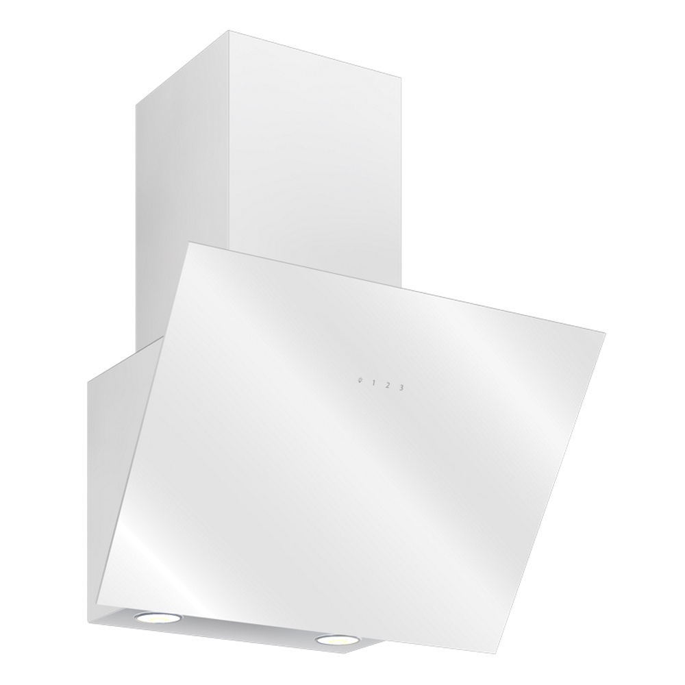 Описаниевытяжка наклонная, 60 см, 650 м3/ч, белый/белое стекло