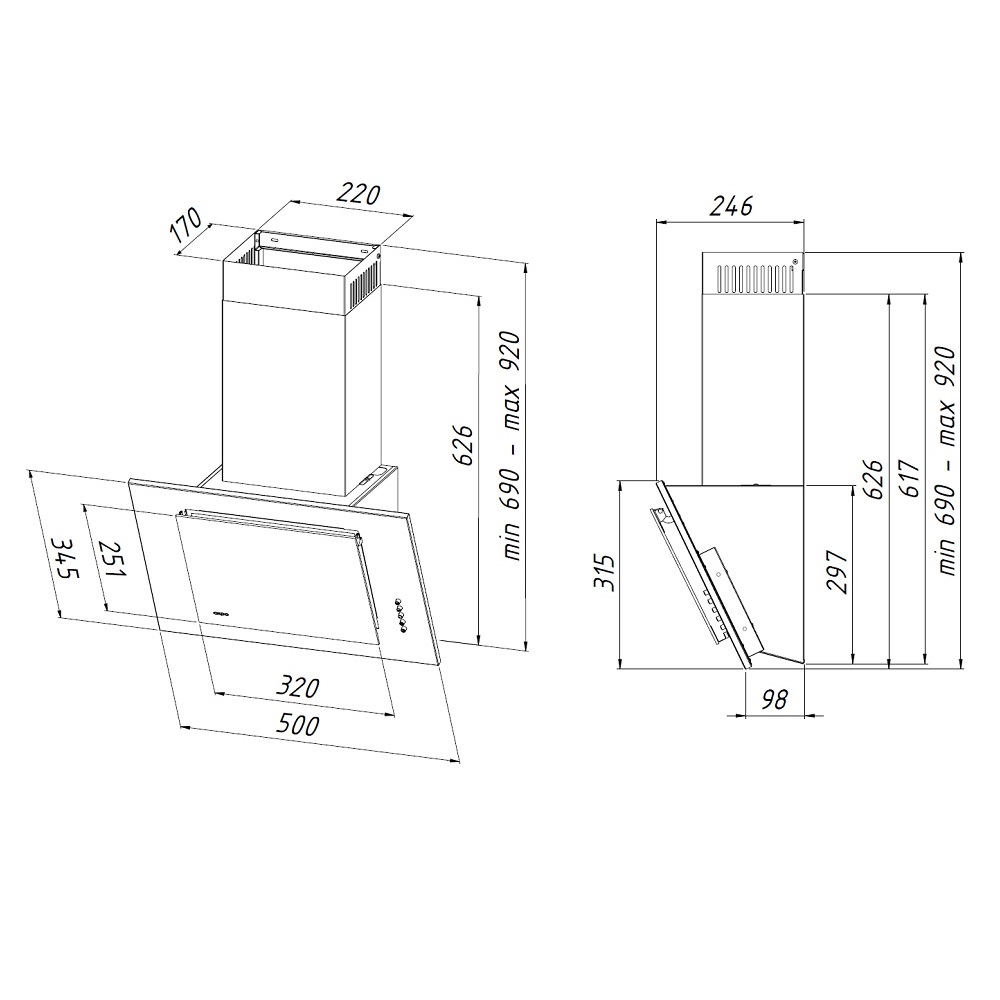 Описаниевытяжка наклонная, 50 см, 740 м3/ч, белый