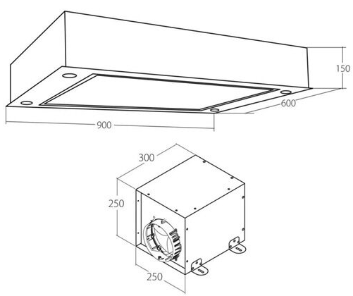 Описаниевытяжка островная, 90 см, 1250 м3/ч, черный