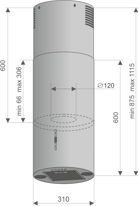 Описаниевытяжка островная, 31 см см, 800 м/ч, золотой
