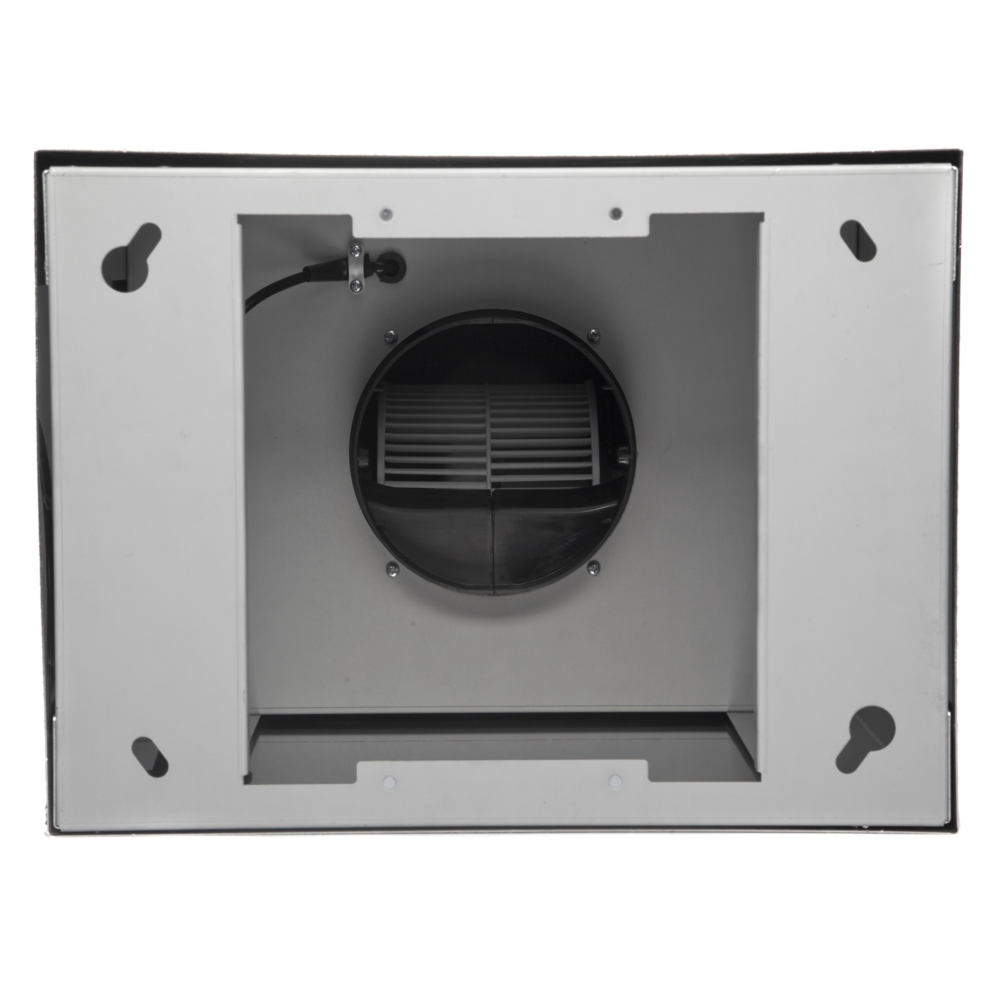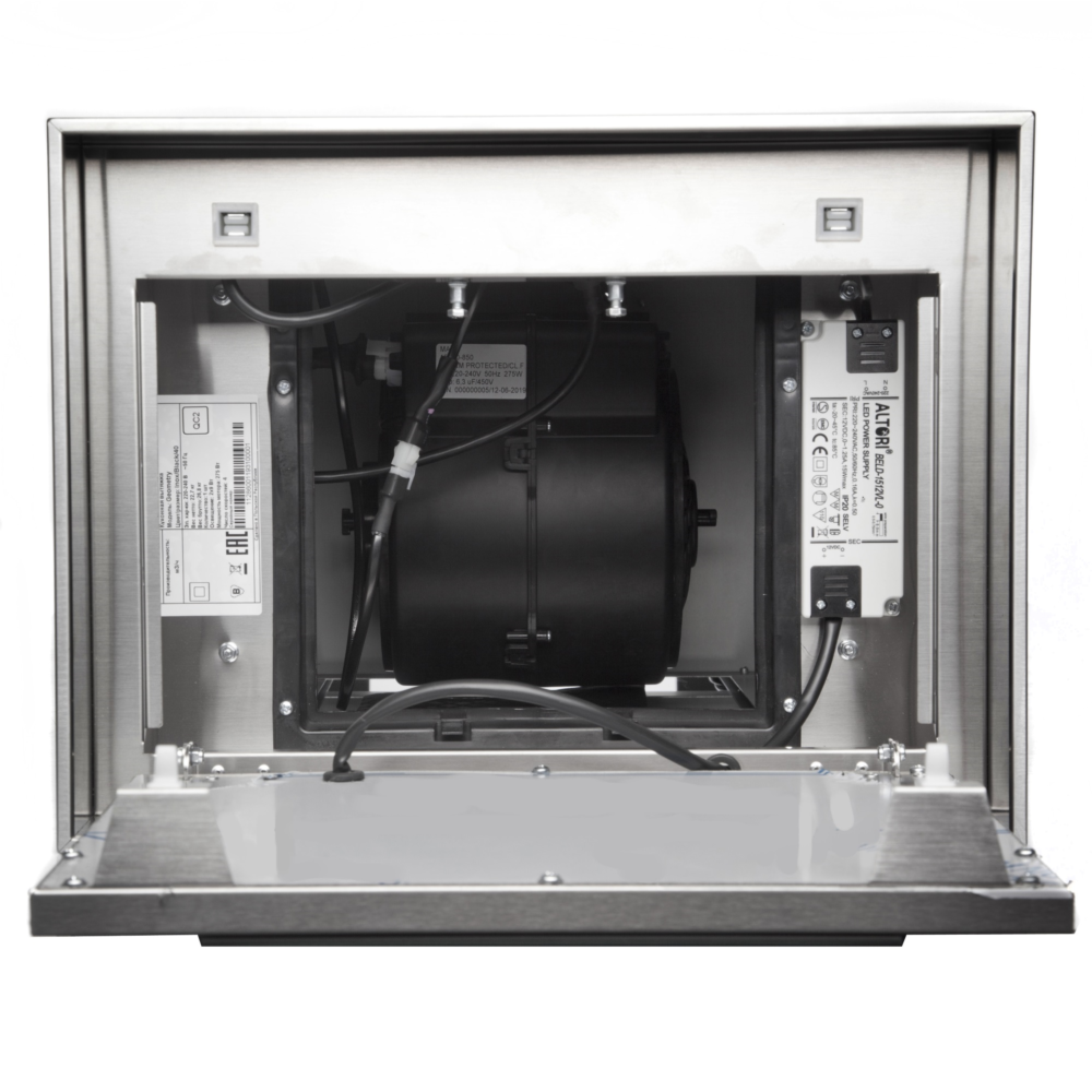 Описаниевытяжка островная, 40 см, 1200 м/ч, нержавеющая сталь/черное стекло