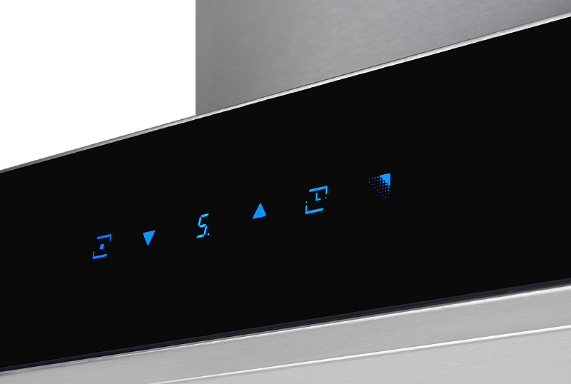 Описаниевытяжка островная, 90 см, 850 м3/ч, нержавеющая сталь/панель черное стекло