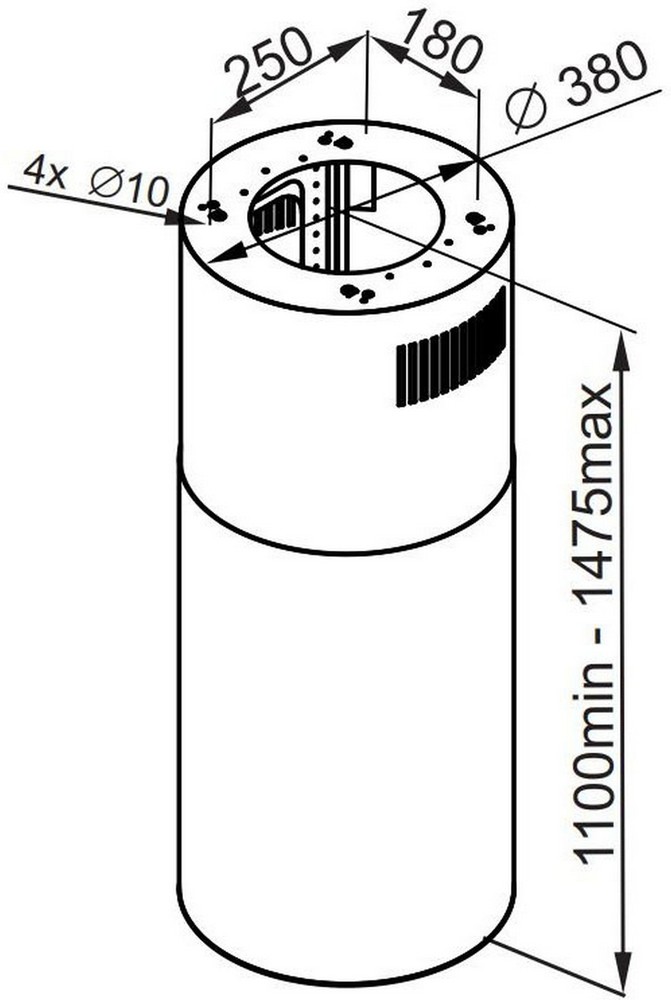 Описаниевытяжка островная, 38 см, 1000 м3/ч, черный