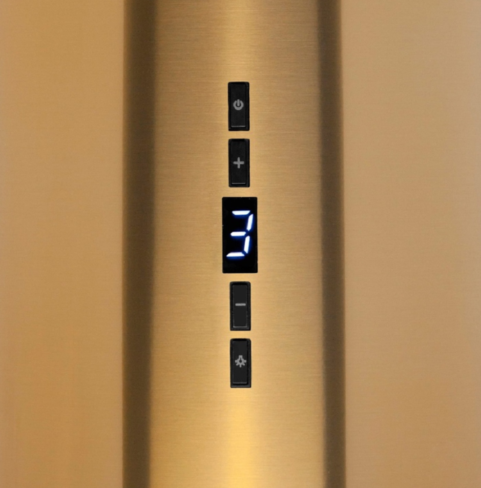 Описаниевытяжка островная, 31 см, 800 м/ч, золотой/черное стекло