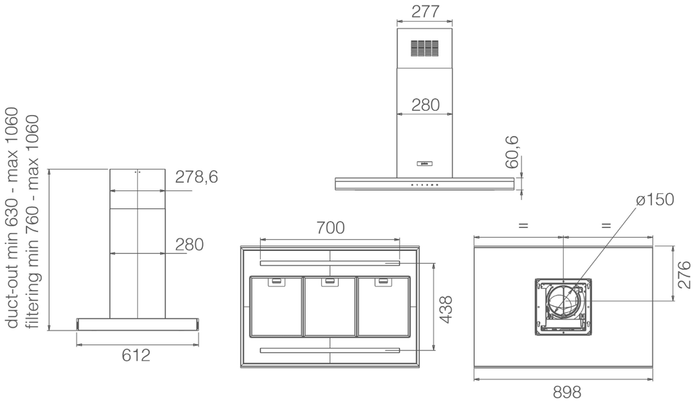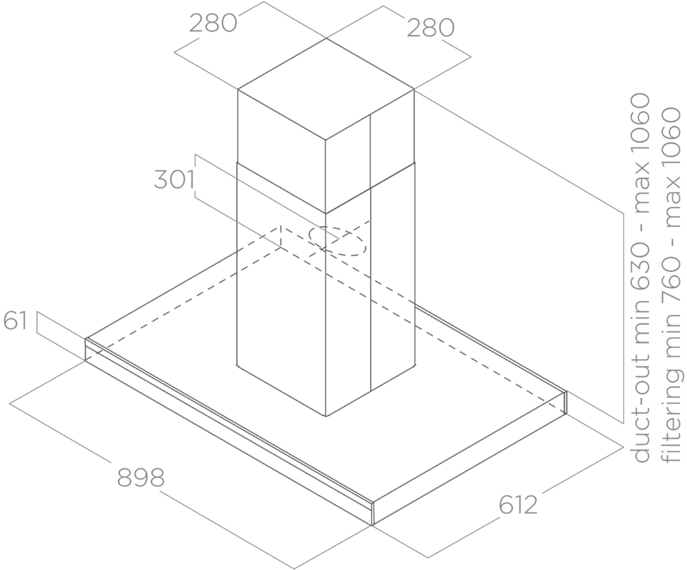 Описаниевытяжка островная, 90 см, 1400 м3/ч, черный
