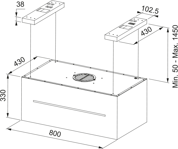 Описаниевытяжка островная, 80 см, 1100 м3/ч, черный матовый