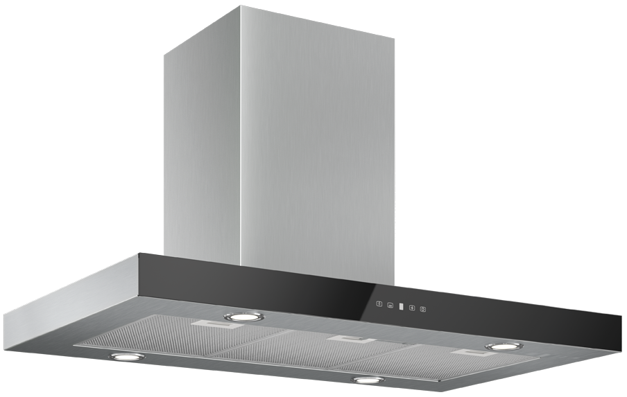 Описаниевытяжка островная, 90 см, 1000 м3/ч, нержавеющая сталь/черный