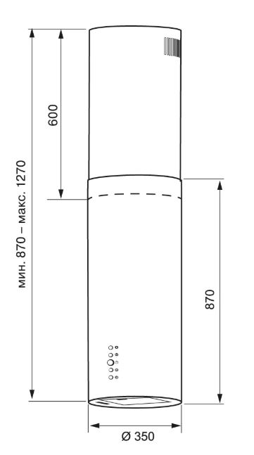 Описаниевытяжка островная, 35 см, 1000 м3/ч, черный