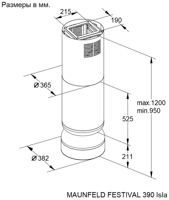 Описаниевытяжка островная, 38,2 см, 1270 м3/ч, бургунди