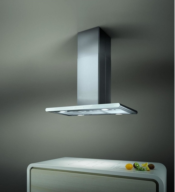 Описаниевытяжка островная, 90 см, 1000 м3/ч, нержавеющая сталь+черное стекло