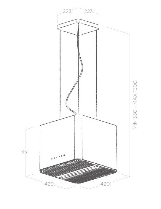 Описаниевытяжка островная, 42 см, 1100 м3/ч, белый