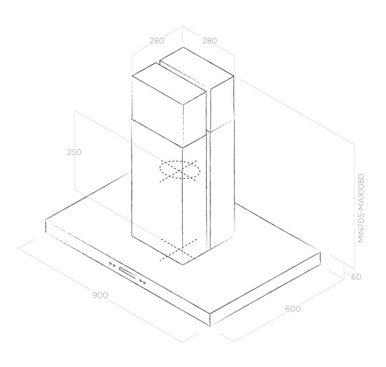 Описаниевытяжка островная, 90 см, 1200 см3/ч, нержавеющая сталь