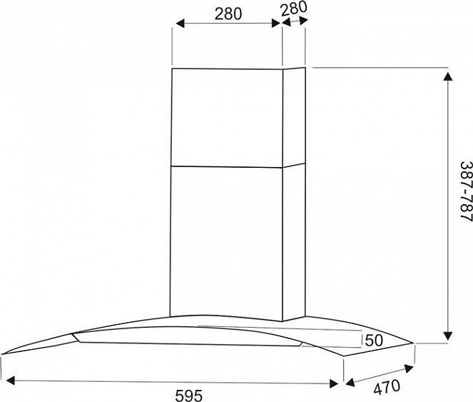 Описаниевытяжка пристенная, 60 см, 1000 м3/ч, нержавеющая сталь/черное стекло
