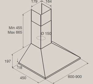 Описаниевытяжка пристенная, 90 см, 650 м3/ч, нержавеющая сталь