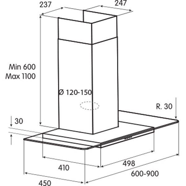 Описаниевытяжка пристенная, 90 см, 700 м3/ч, нержавеющая сталь+ прозрачное стекло