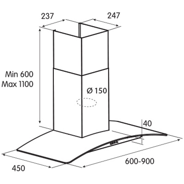 Описаниевытяжка пристенная, 90 см, 700 м3/ч, нержавеющая сталь/стекло