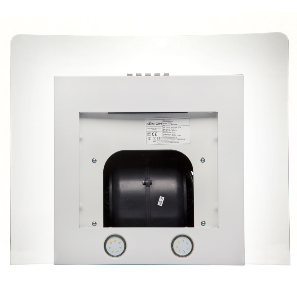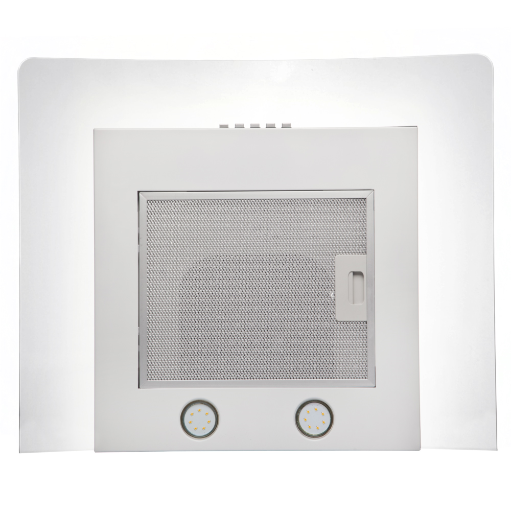 Описаниевытяжка пристенная, 50 см, 700 м/ч, белый/прозрачное стекло
