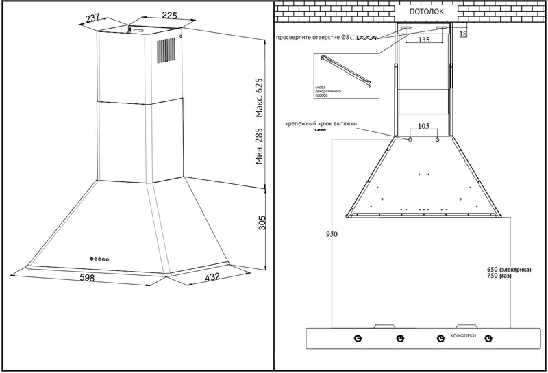 Korting KHC 6648 RGB Вытяжка пристенная