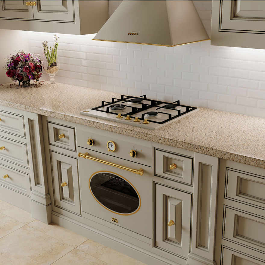 Описаниевытяжка пристенная, 60 см, 650 м3/ч, слоновая кость, золото