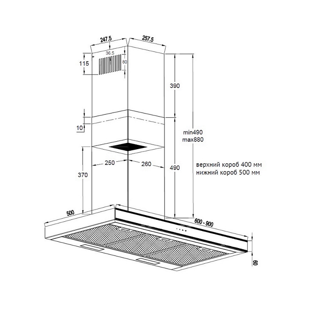 Описаниевытяжка пристенная, 60 см, 800 м3/ч, нержавеющая сталь + черное стекло