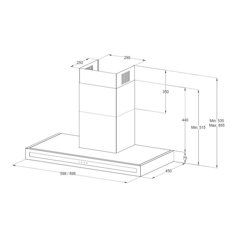 Описаниевытяжка пристенная, 60 см, 850 м3/ч, черный + черное стекло