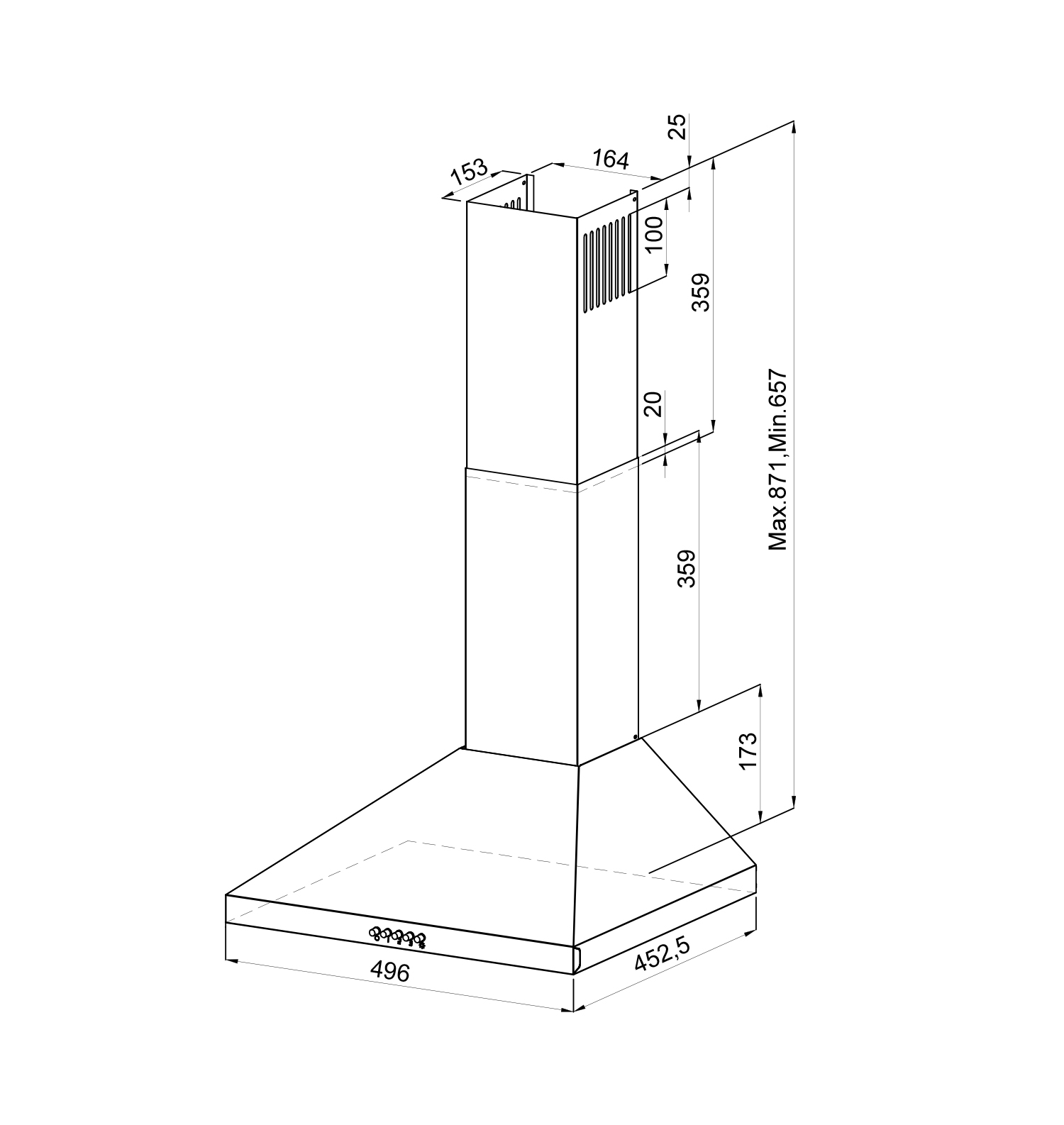 Описаниевытяжка пристенная, 50 см, 700 м3/ч, белый