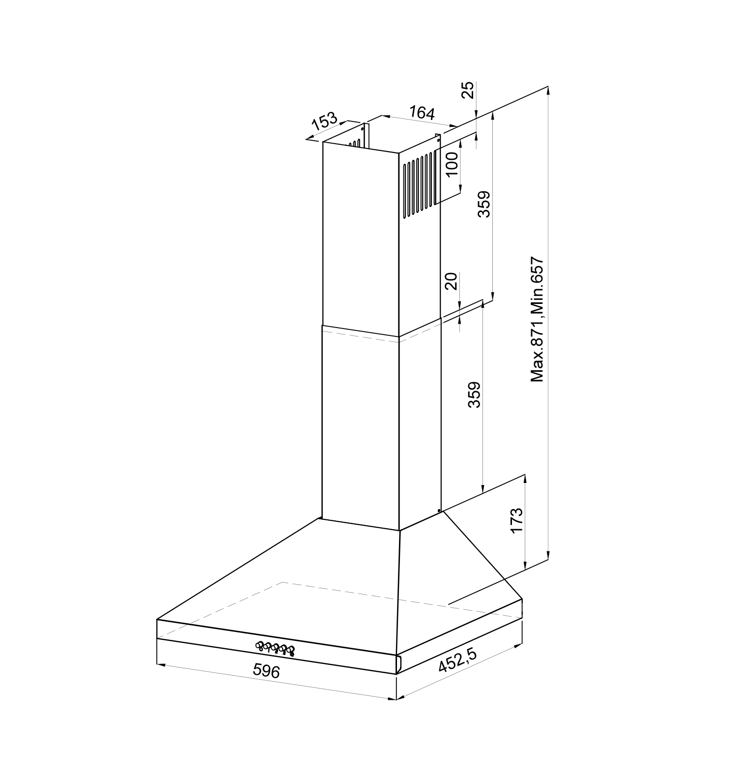 Описаниевытяжка пристенная, 60 см, 700 м3/ч, черный