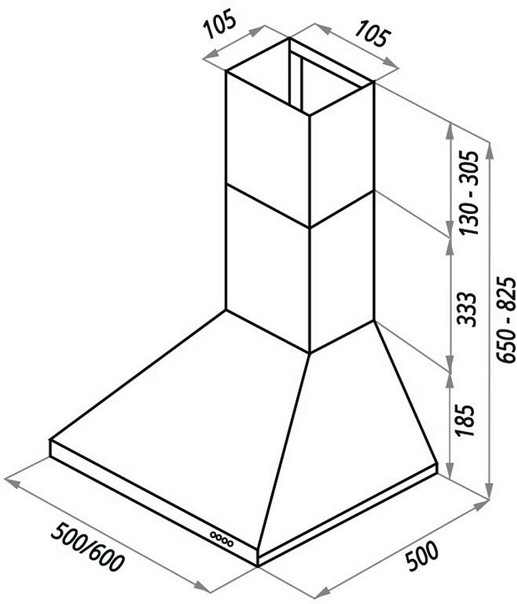 Описаниевытяжка пристенная, 50 см, 500 м3/ч, белый