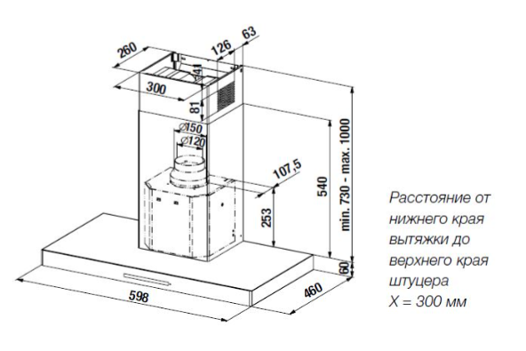 Описаниевытяжка пристенная, 60 см, 750 м3/ч, нержавеющая сталь