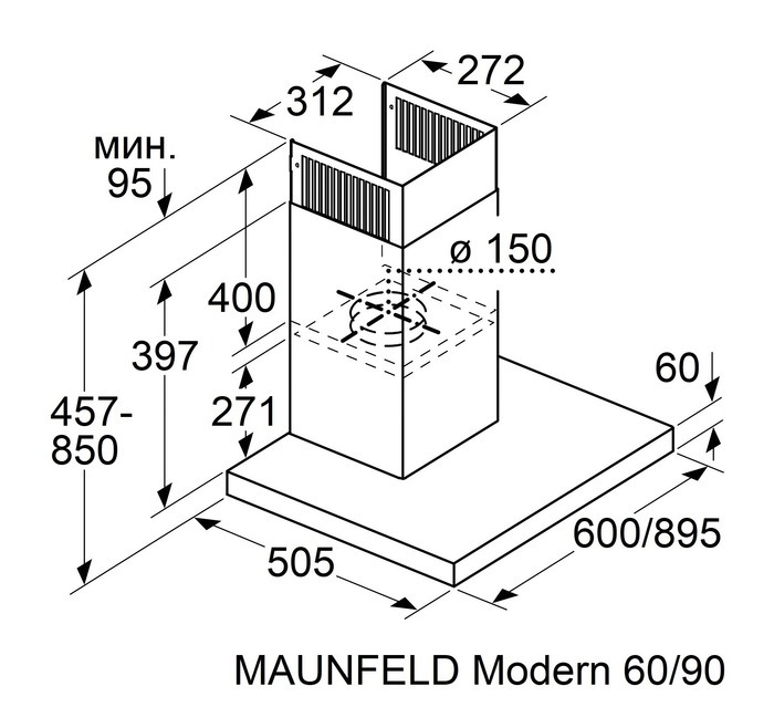 Maunfeld Modern 90 Black Вытяжка пристенная