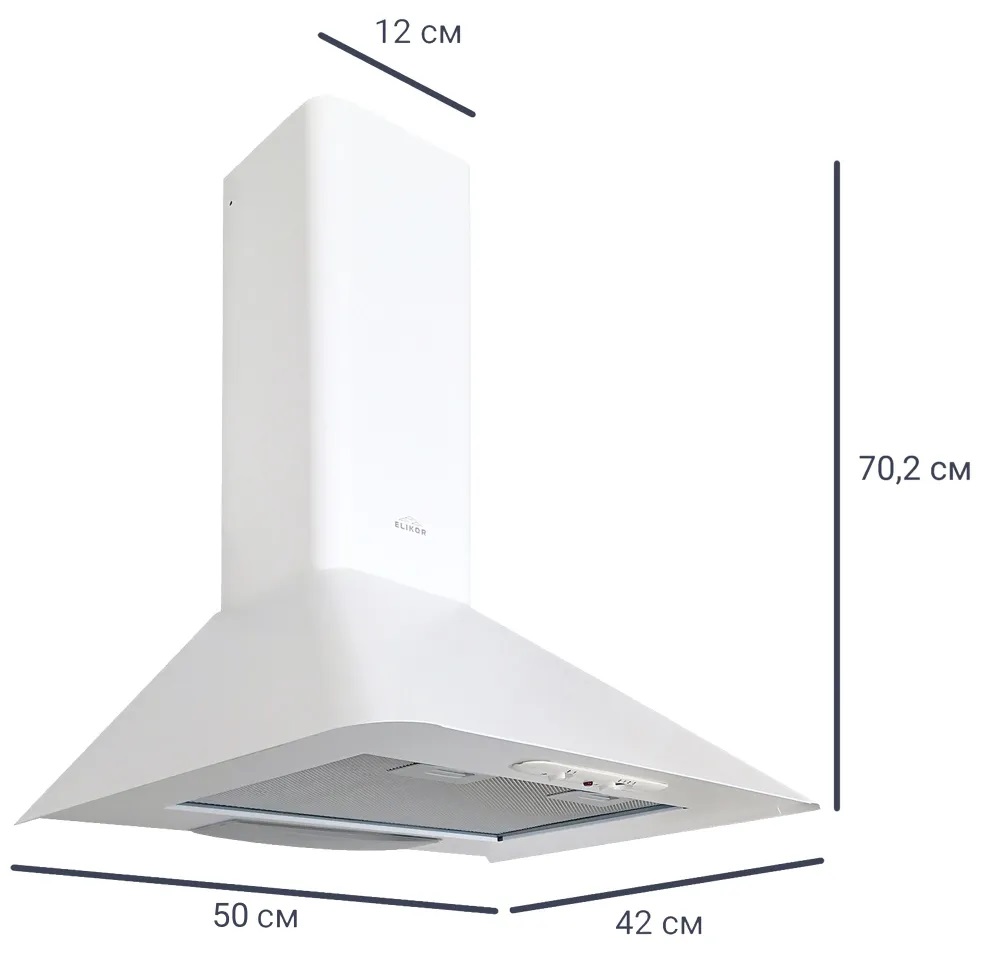 Описаниевытяжка пристенная, 50 см, 400 м3/ч, белый