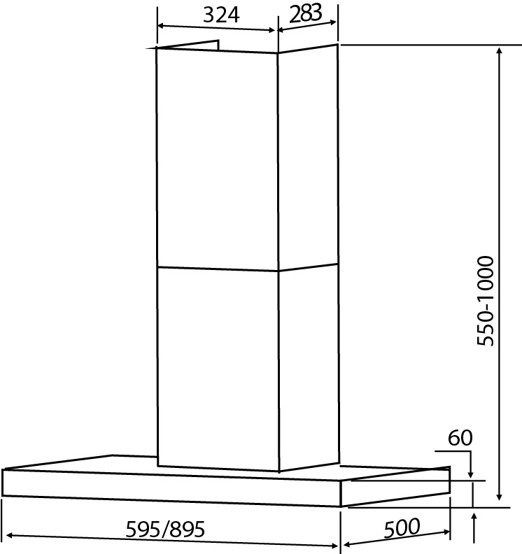 Описаниевытяжка пристенная, 60 см, 1000 м3/ч, черный
