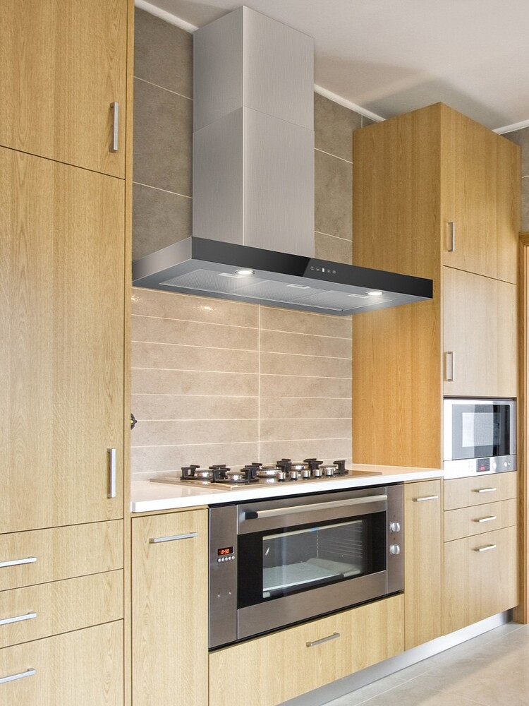 Описаниевытяжка пристенная, 90 см, 1000 м3/ч, нержавеющая сталь/черный