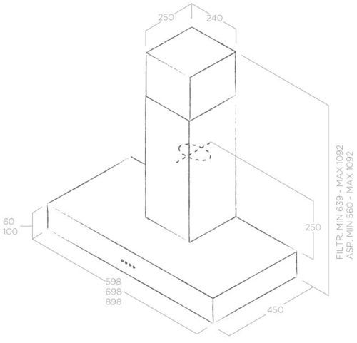 Описаниевытяжка пристенная, 90 см, 1000 м3/ч, светло-серый