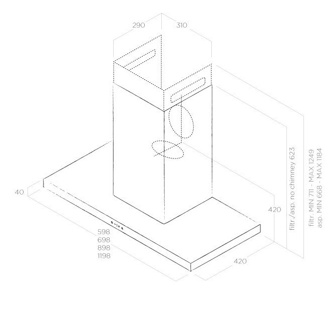 Описаниевытяжка пристенная, 70 см, 1200 м3/ч, нержавеющая сталь
