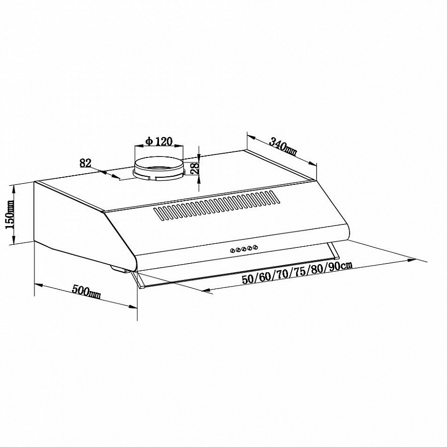 Описаниевытяжка стандартная, 50 см, 520 м3/час, белый