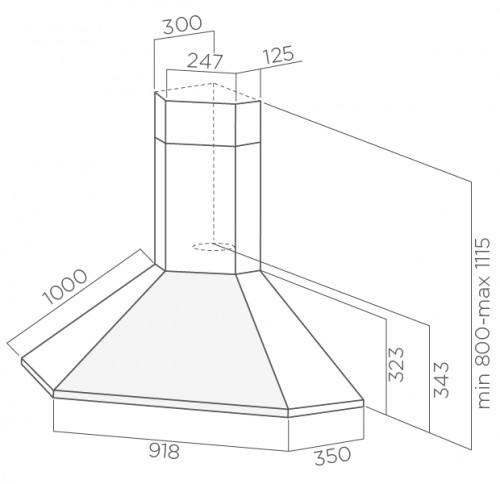 Описаниевытяжка угловая, 100 см, 1200 м3/ч, нержавеющая сталь