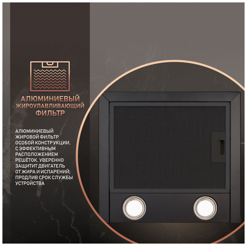 Описаниевытяжка пристенная, 40 см, 750 м3/ч, черный