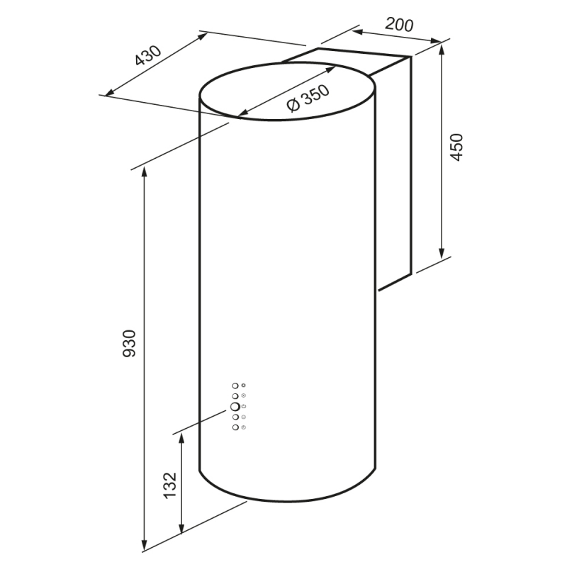 Описаниевытяжка пристенная, 35 см, 1000 м3/ч, белый