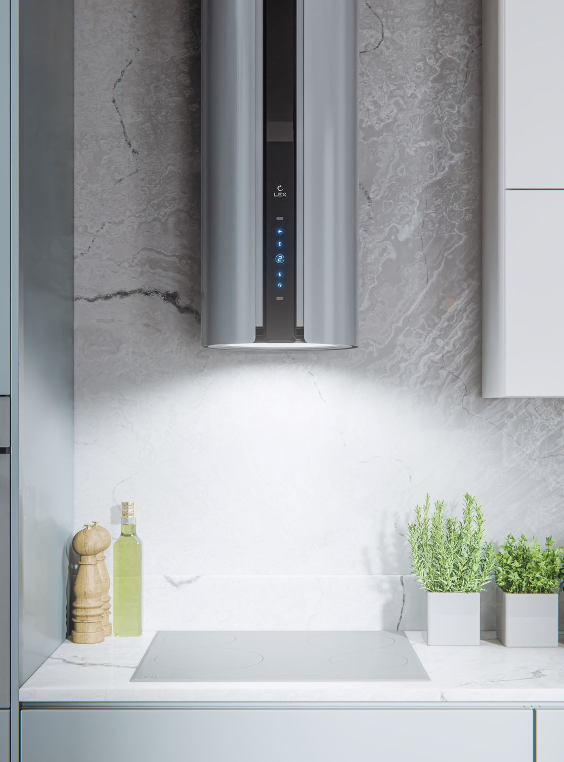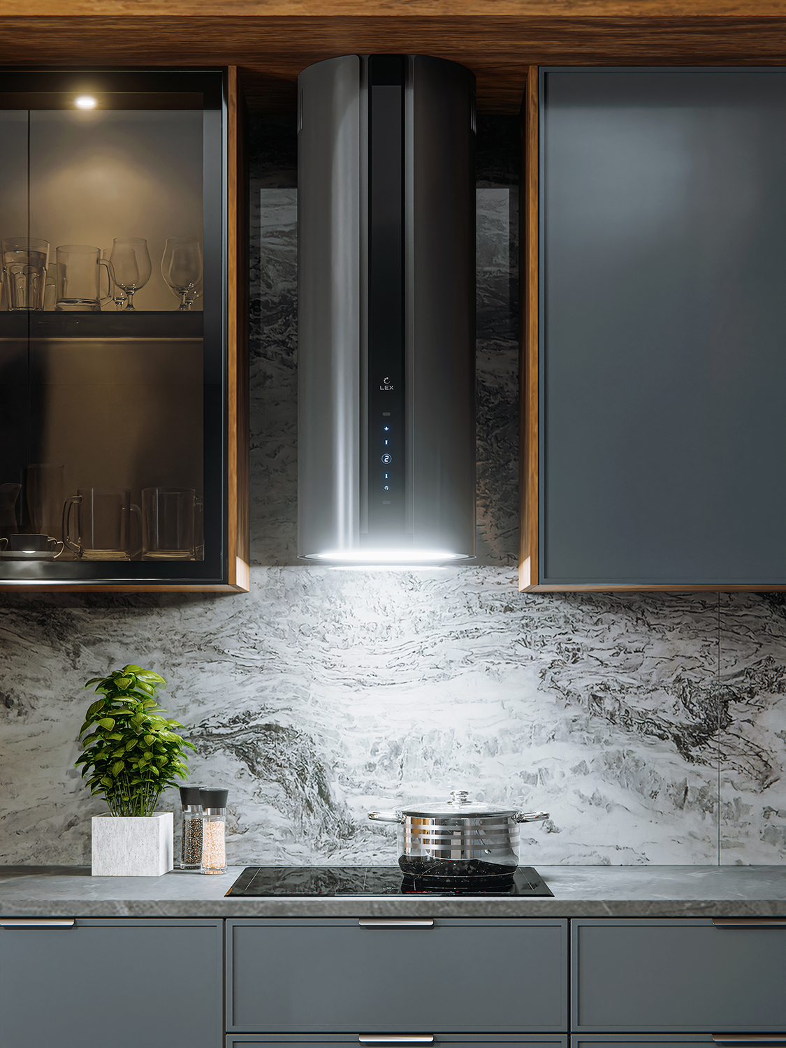 Описаниевытяжка пристенная, 35 см, 1050 м3/ч, серое стекло