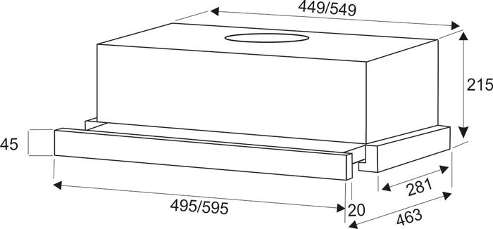Описаниевытяжка встраиваемая телескопическая, 50 см, 600 м3/ч, нержавеющая сталь