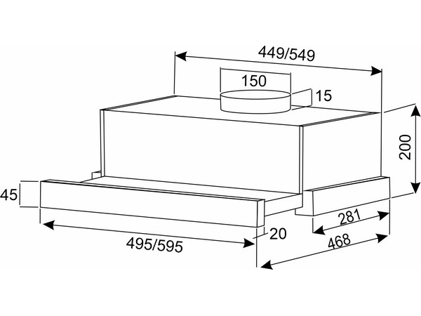 Описаниевытяжка встраиваемая телескопическая, 60 см, 600 м3/ч, белое стекло
