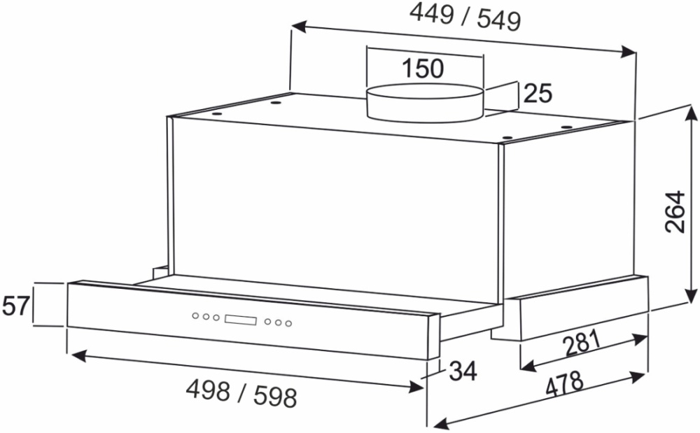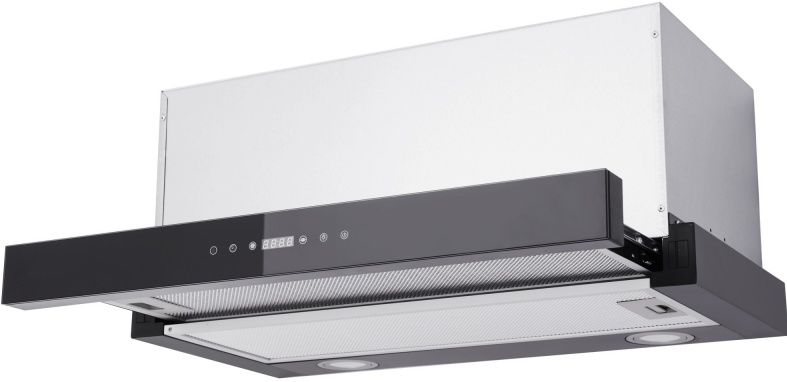 Описаниевытяжка встраиваемая телескопическая, 50 см, 1000 м3/ч, черное стекло