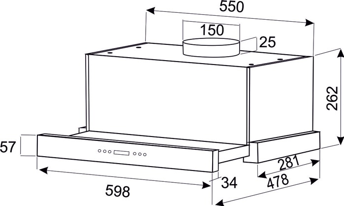 Описаниевытяжка встраиваемая телескопическая, 60 см, 1000 м3/ч, черный