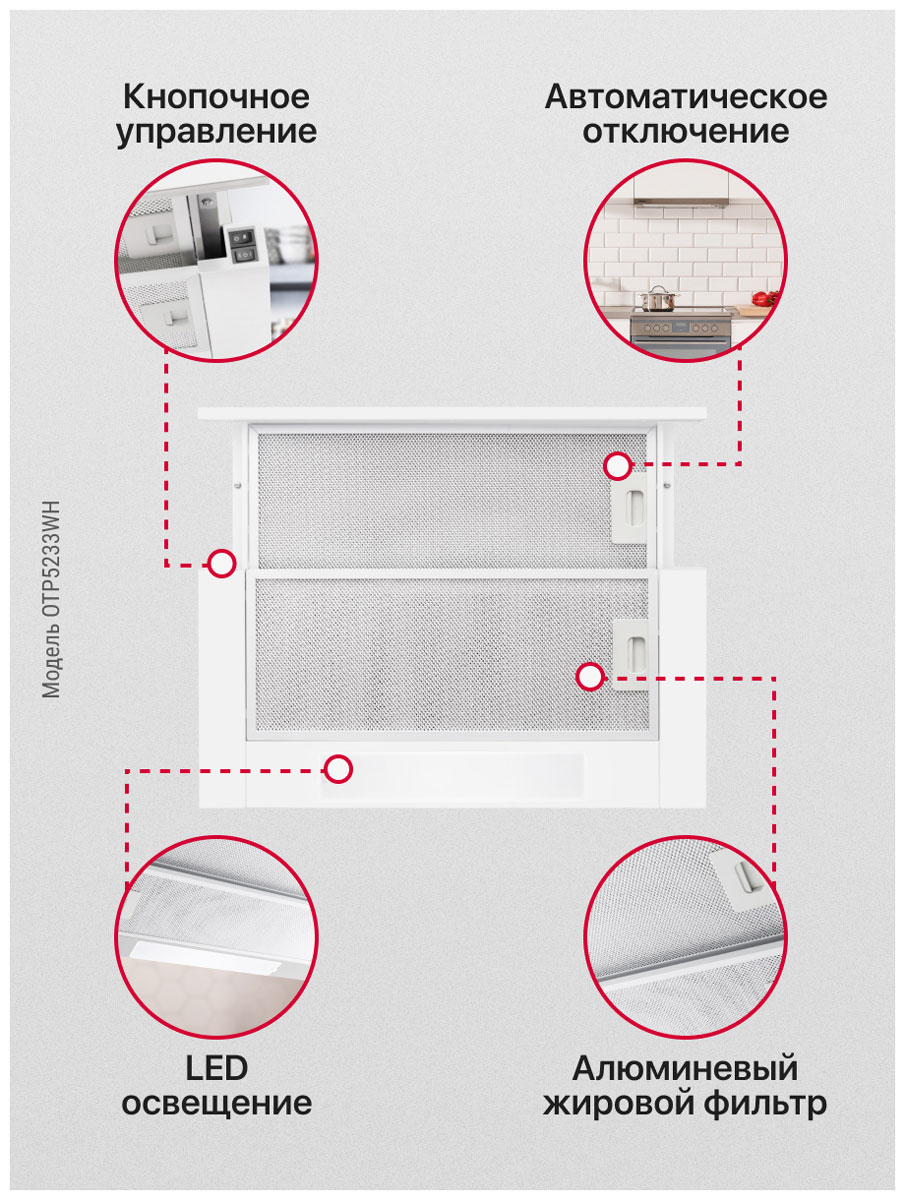 Описаниевытяжка встраиваемая телескопическая, 50 см, 350 м3/ч, белый
